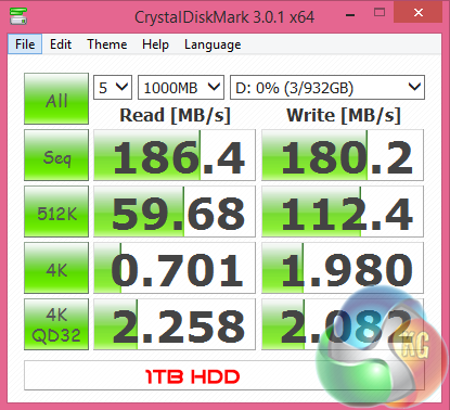 Crystalmark is a useful benchmark to measure theoretical performance levels of hard drives and SSD’s. We are using V3.0.1 x64. We test the Samsung 840 Evo Solid State Drive, and the Seagate mechanical drive.