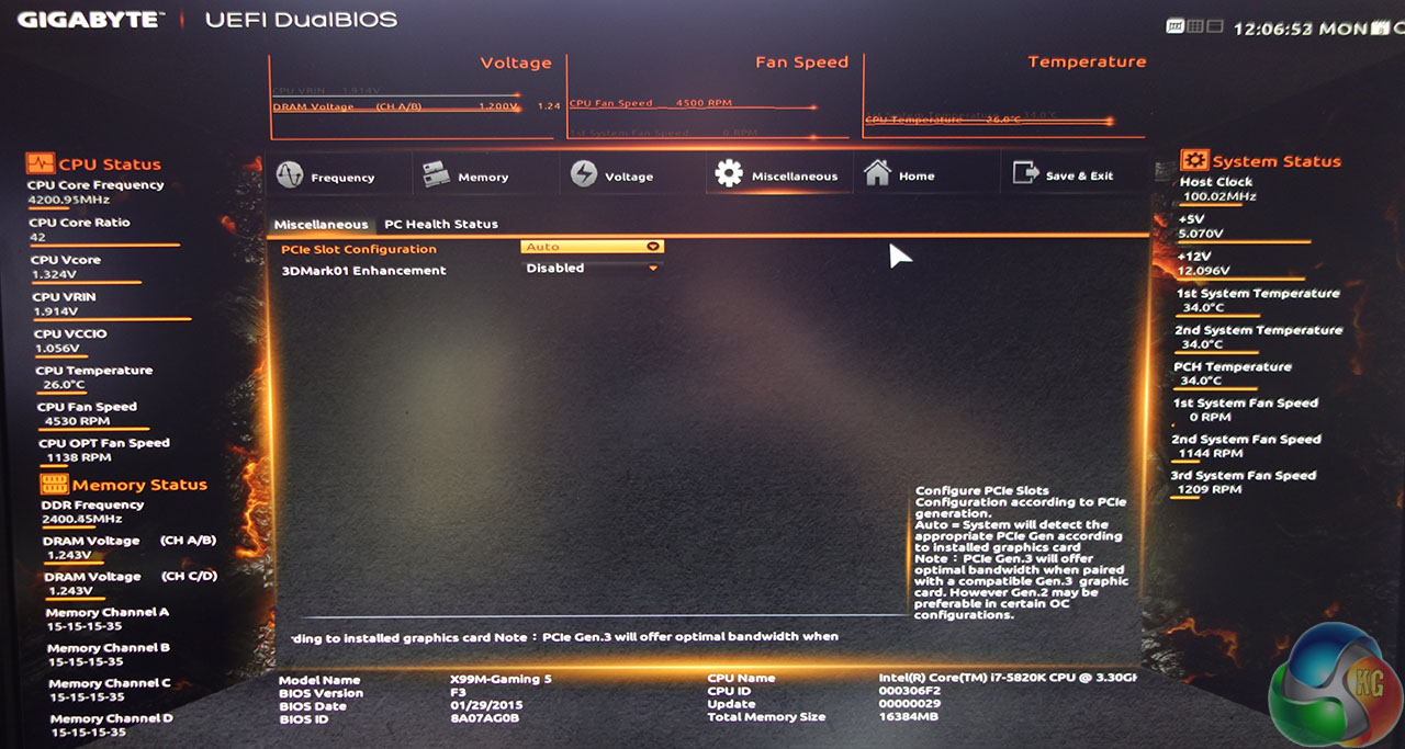 We set the BIOS to run in the UEFI mode and changed the PCIe slot Configuration from AUTO to GEN3 – forcing the system to use the maximum available bandwidth. The results increased to around 2,100MBps/900 MBps which seems more in line with what we would expect. If you own this board we would recommend you change this setting from AUTO (which seems to setting a GEN1 for the Intel 750) as shown above.