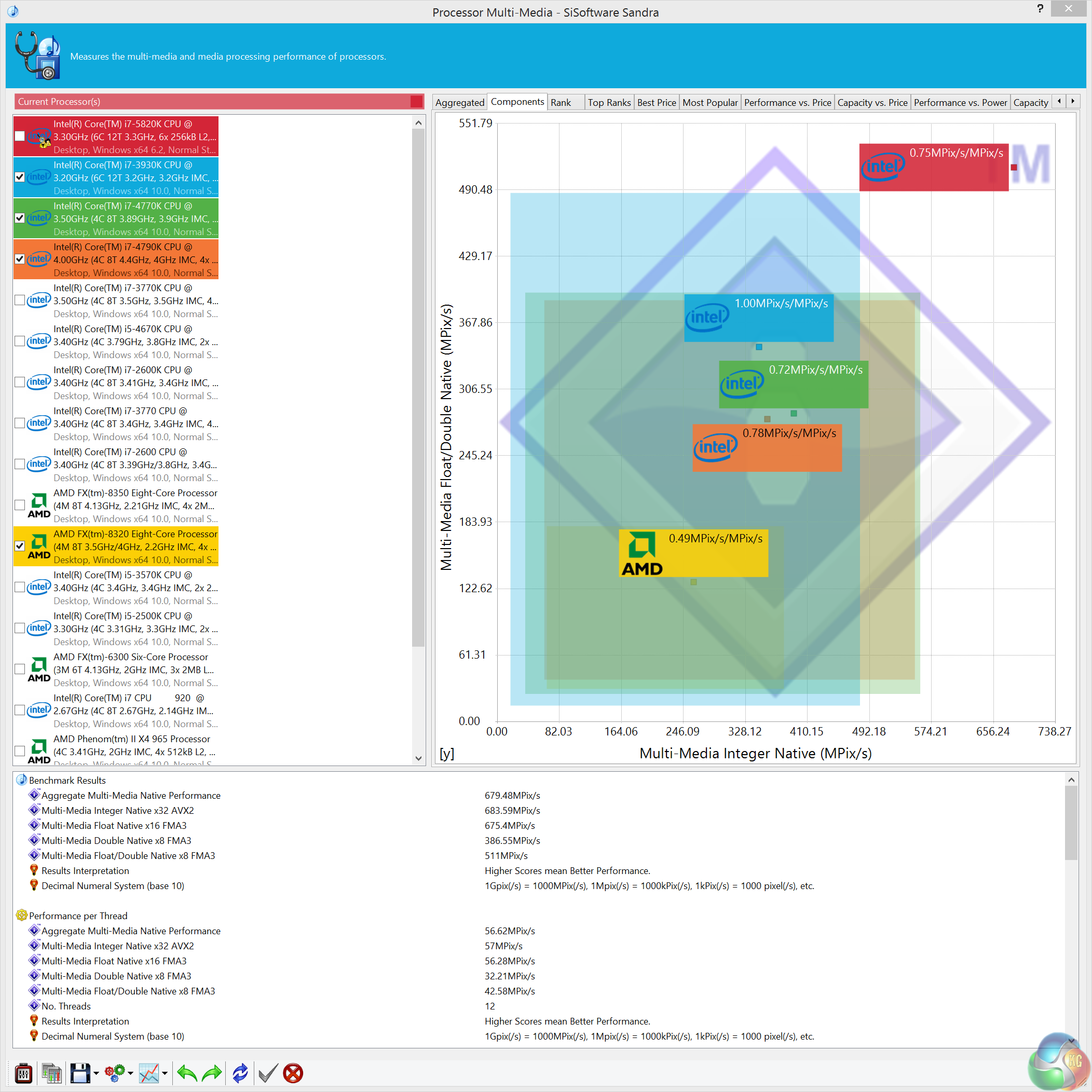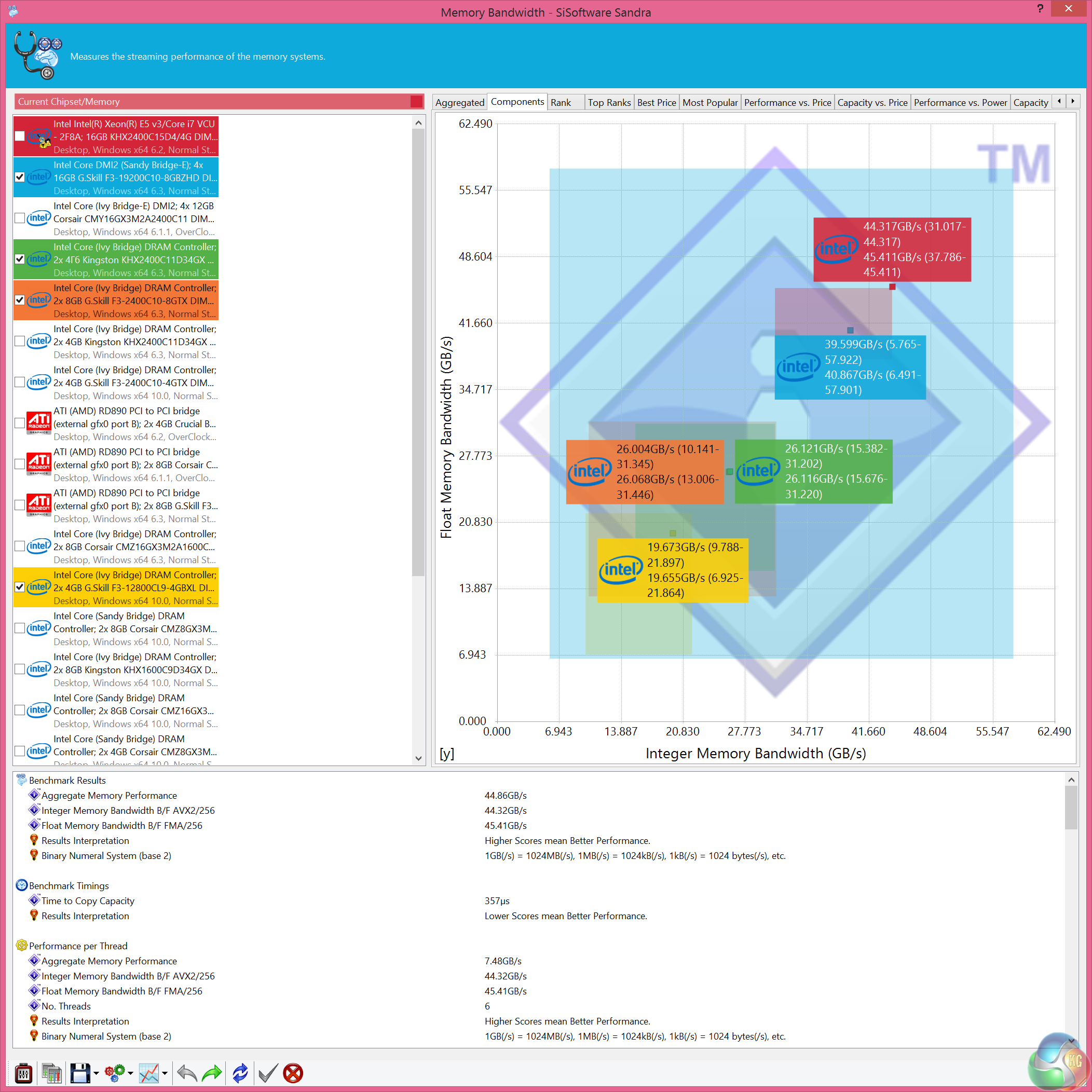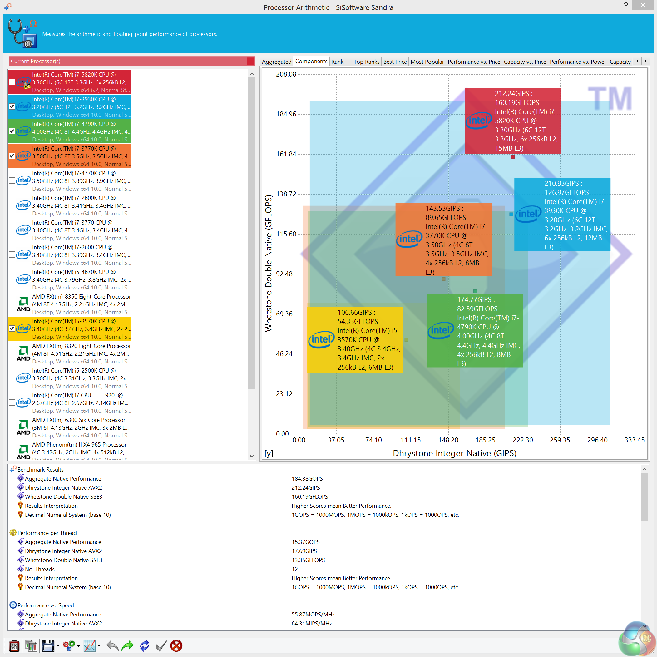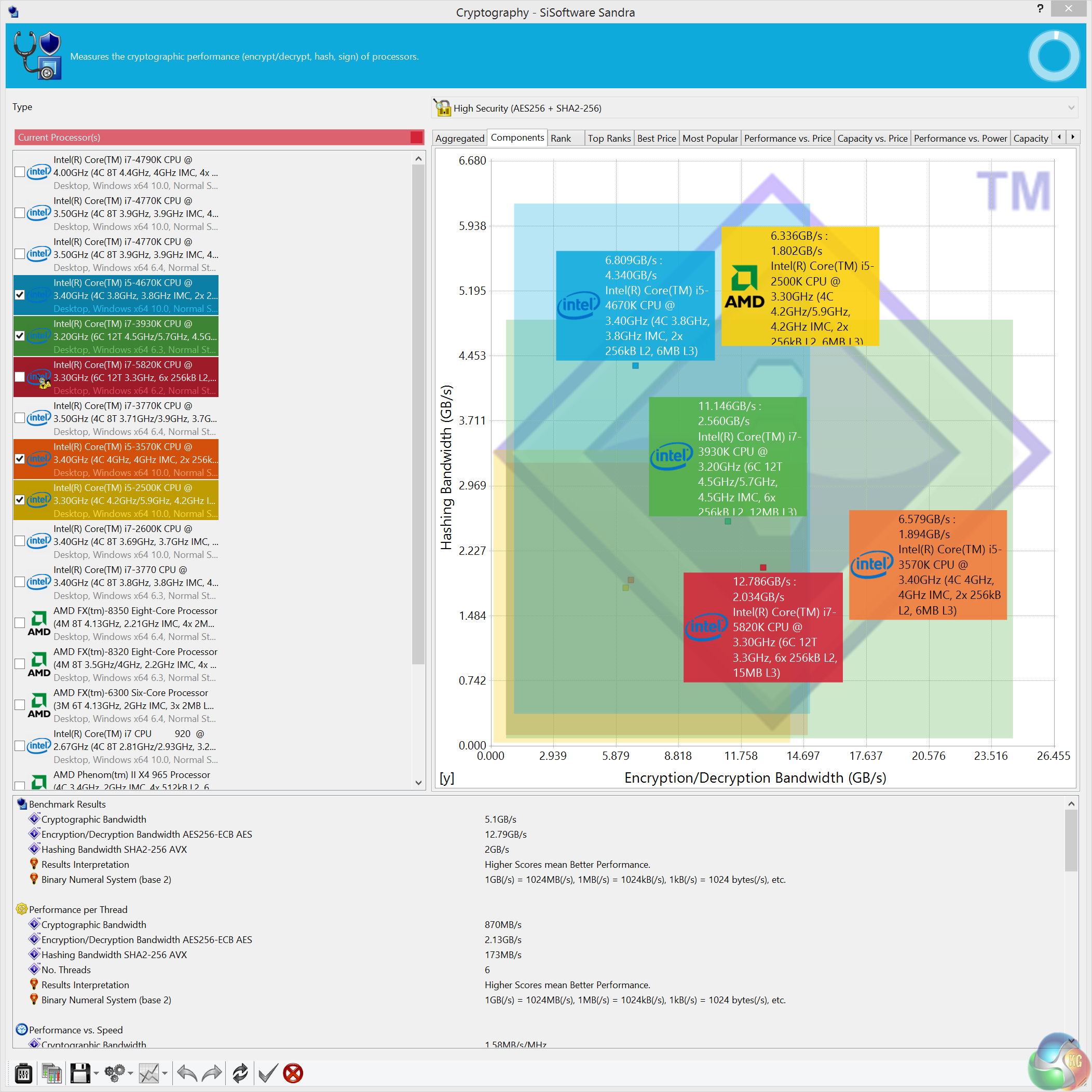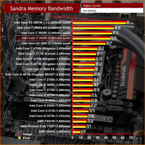 The Core i7 5820k is a powerful processor, especially when overclocked. Quad Channel DDR4 memory performance is also excellent, scoring close to the top of the chart.