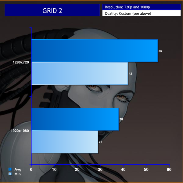 Excellent results – showing that GRID 2 was playable at both resolutions. The game is smooth throughout.