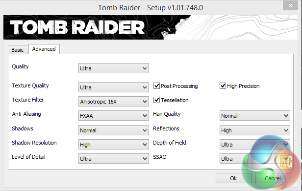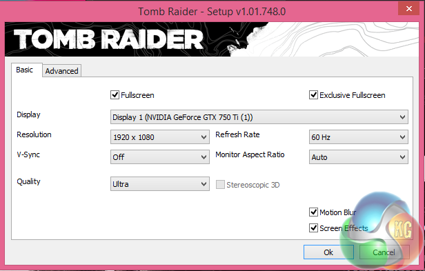 We configured Tomb Raider to run at 1080p with Ultra image quality settings, shown above. We did try Ultimate, but the GTX750 Ti struggled a little to maintain 25+ frame rates.