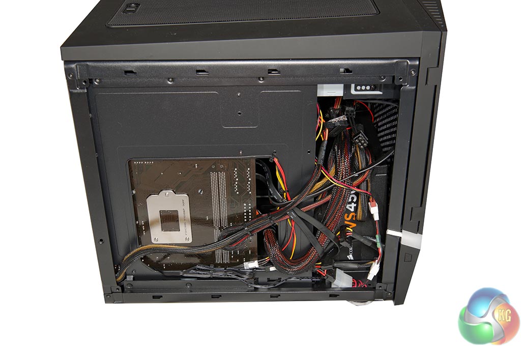 The cable clutter is partially due to the side panel housing, which contains a PCB board. If you pull open the side panel too far, they will all disconnect. I quite like the exterior of the Bitfenix Colossus, but after looking at the internal build, I do much prefer the AeroCool Dead Silence.