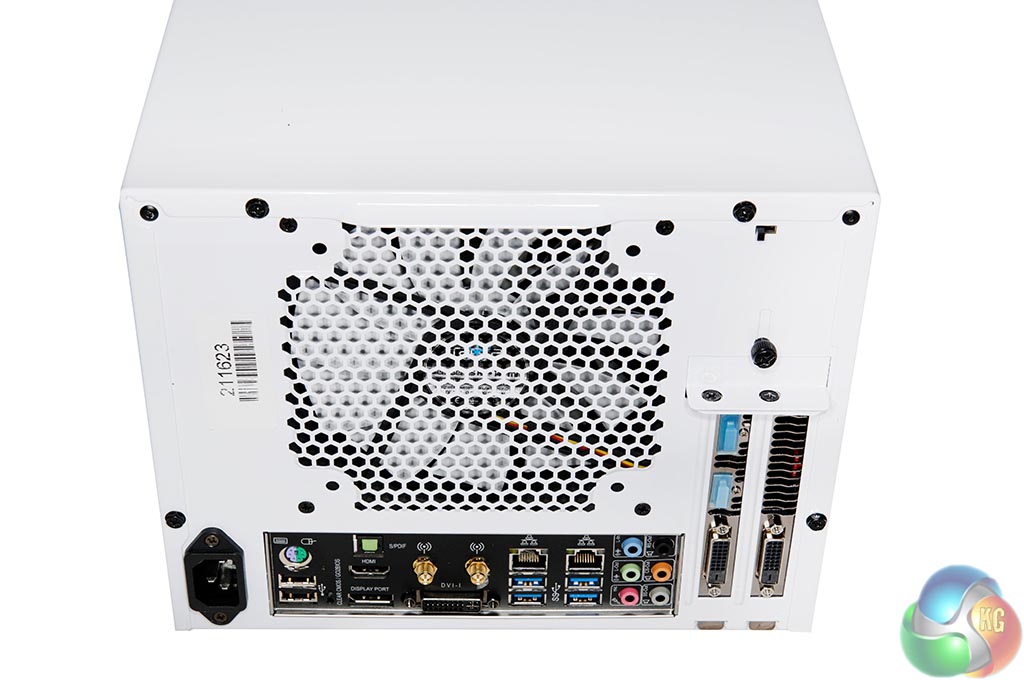 MESH are using a WIFI enabled MSI Z87 motherboard. There are plenty of connectors at the back of the case, including another four USB 3.0 ports. It is important not to use the HDMI or DVI connectors on the motherboard, as MESH have installed a significantly more powerful AMD R9 290, with associated connectors running vertically at the side.