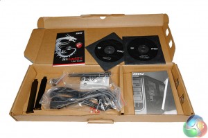A smaller box inside contains the peripherals, cables, literature and discs.
