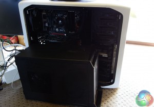 Just to give you an idea of the tiny size of the MSI Nightblade case, we positioned it next to the Corsair 600T chassis (above) used on one of our test systems. We use this specific system as our main graphics card testing rig.