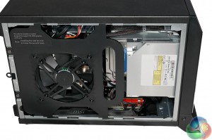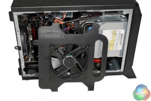 The fan which previously looked fitted to the main chassis door is in fact actually part of an additional cooling panel which slots into the case, screwed into place at the back with two more screws.
