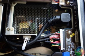 A power supply extension cable runs from the top section at the back of the Nightblade chassis into the power supply at the front.