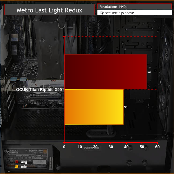 On May 22, 2014, a Redux version of Metro Last Light was announced. It was released on August 26, 2014 in North America and August 29, 2014 in Europe for the PC, PlayStation 4 and Xbox One. Redux adds all the DLC and graphical improvements. A compilation package, titled Metro Redux, was released at the same time which includes Last Light and 2033. (Wikipedia). We test with following settings: Quality-Very High, SSAA-off, Texture Filtering-16x, Motion Blur-Normal, Tessellation-Normal, Advanced Physx-off.