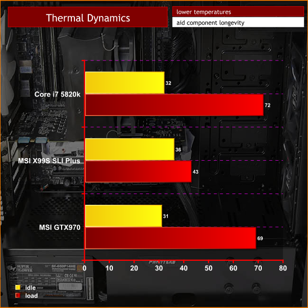 Temperatures are well maintained as the chassis produces a reasonable level of airflow throughout.