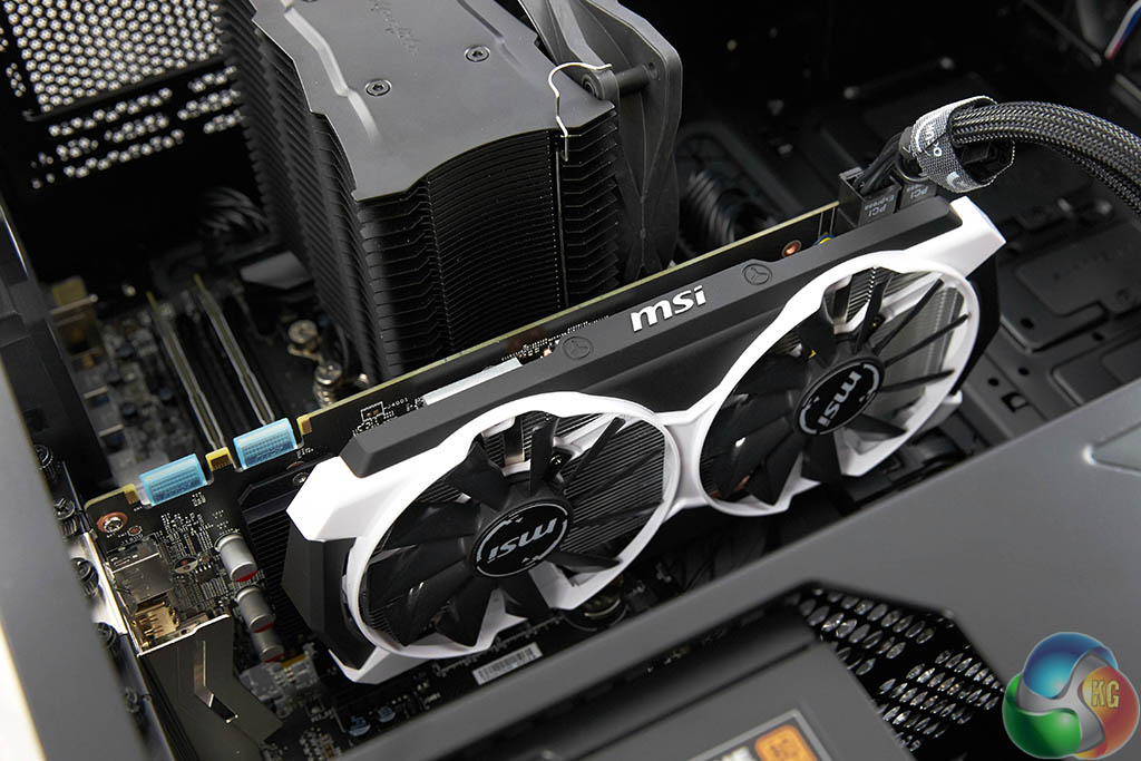 The MSI GTX970 graphics card is very attractive, the PCB and fans are all black, and even the cooler is black, with a modest white surround.