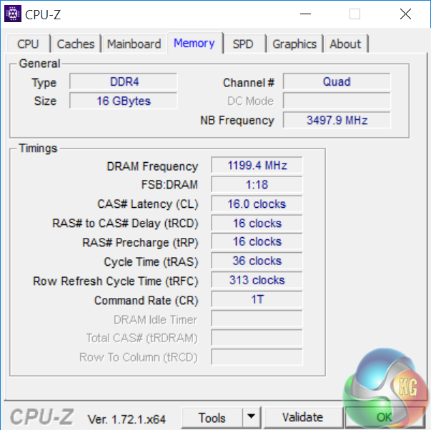 The Kingston memory is running at 2,400mhz at 16,16,36 1T timings.