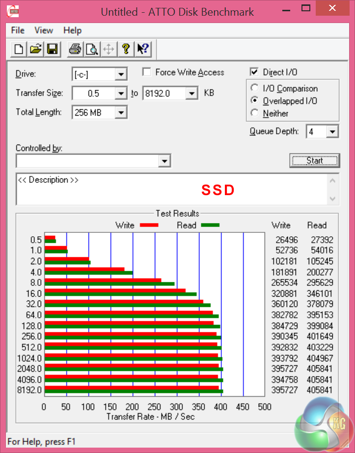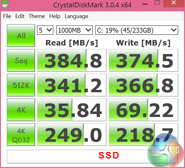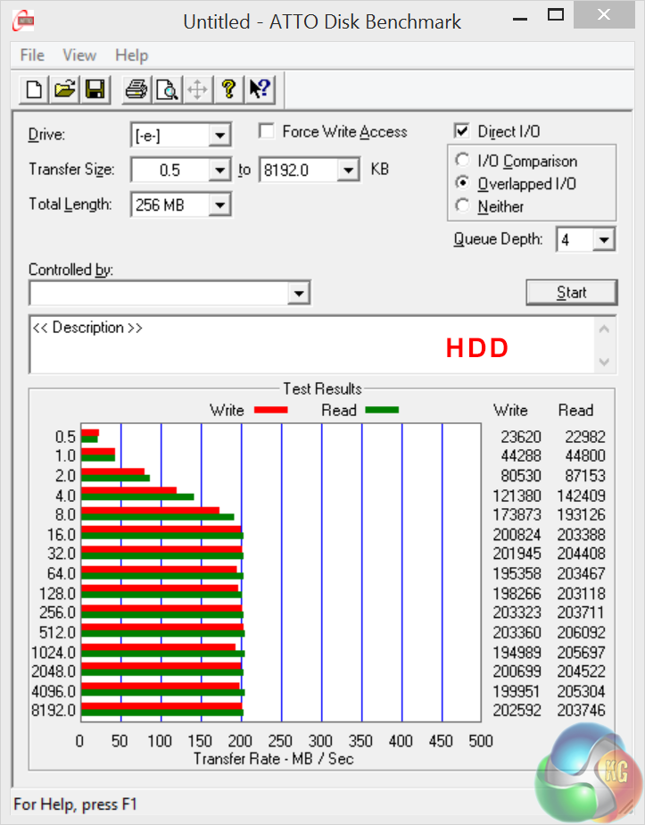 The Samsung 250GB 850 EVO Drive is a great performer although we expected a little more from the drive in this test – we think OCUK are using one of the ASMedia ASM1061 controlled ports for this drive, rather than one of the native Intel controlled ports. HDD performance is as good as we would expect – hitting 200MB/s in both read and write tests.