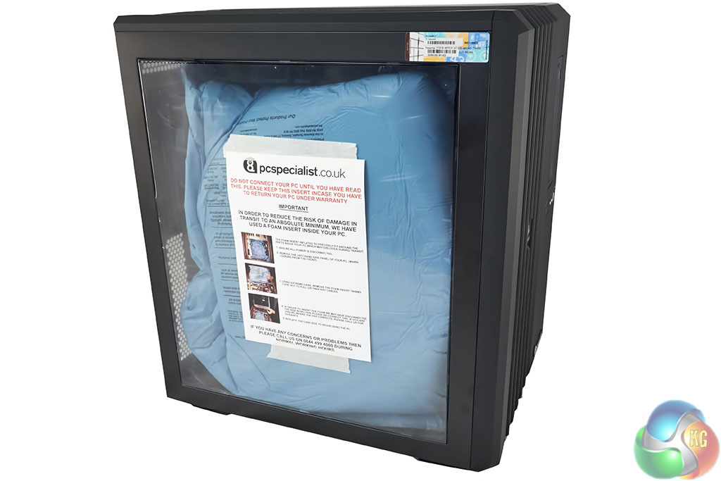 PCSpecialist protect their systems well. They use sculpted blue foam to hold the components in place, as shown in the image above. Obviously this needs removed before turning the system on for the first time.