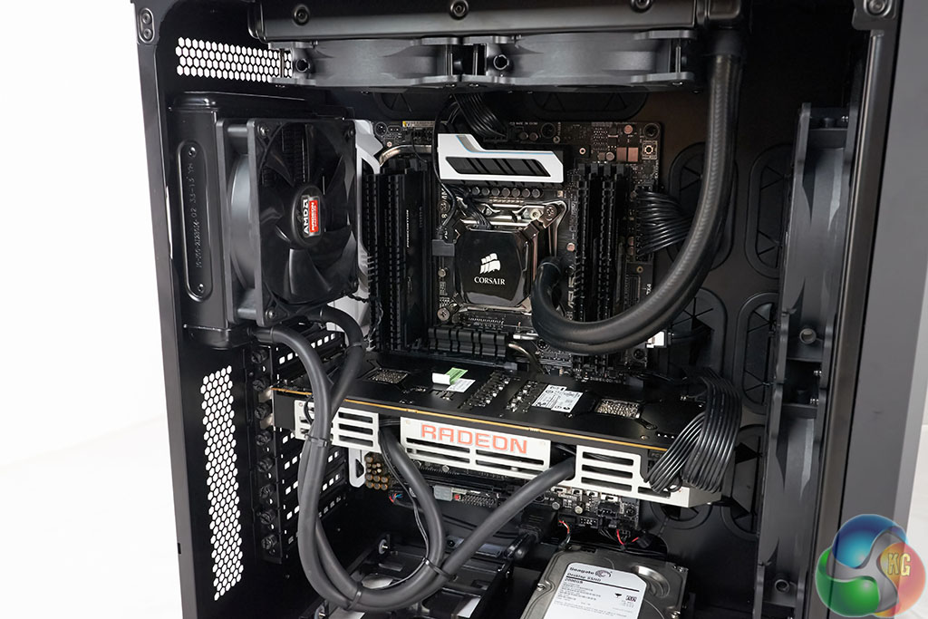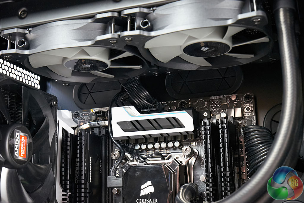The Corsair radiator is mounted at the top of the case in an exhaust position.
