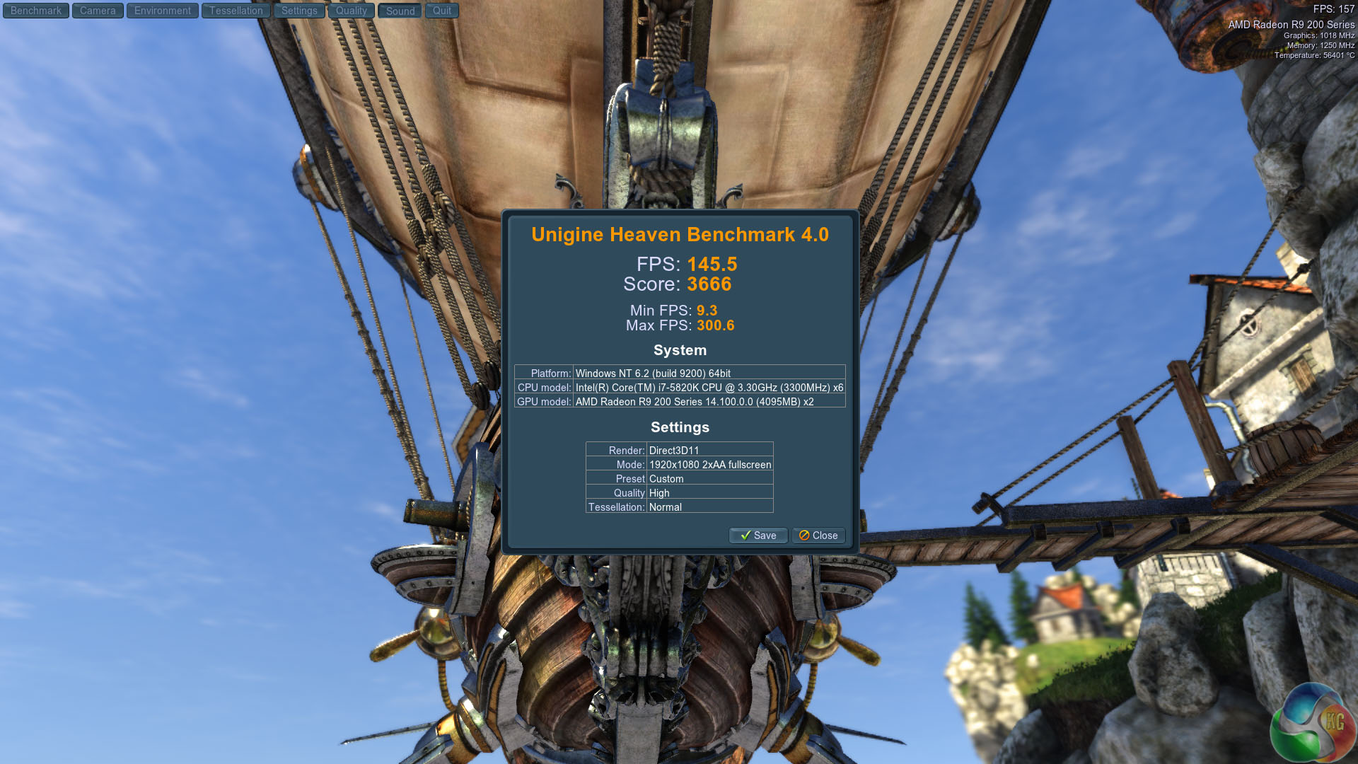Heaven Benchmark is a DirectX 11 GPU benchmark based on advanced Unigine engine from Unigine Corp. It reveals the enchanting magic of floating islands with a tiny village hidden in the cloudy skies. Interactive mode provides emerging experience of exploring the intricate world of steampunk.