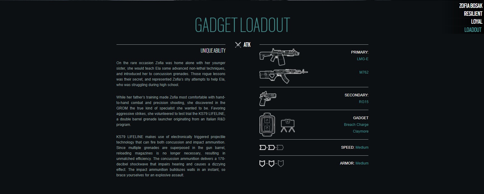 Since then, an overwhelming amount of information about the operator has come to light, including a detailed story about Zofia’s history before joining Team Rainbow, including a strained relationship with Ela, her being a mother and her father falling in with the wrong political crowds. More interestingly, her loadout has been revealed and confirmed.