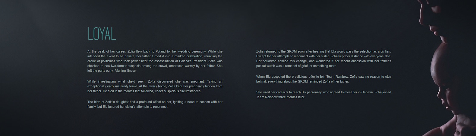 “The well-known, decorated officer Zofia Bosak is joining Team Rainbow! She is the second specialist from Poland’s CTU GROM, also the older sister to Elżbieta Bosak (A.K.A. Ela).”