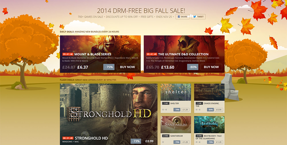 The sale is set to run until the 25th November, so there's nearly two weeks of deal hunting action for the game hoarders among you. For everyone else however, there's a prospect of cheap gaming to be had and it's all the sweeter knowing that everything is compatible and comes without DRM.