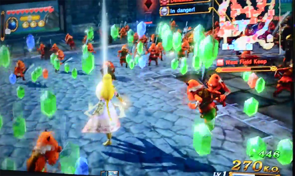 In this video we see Zelda surrounded by enemies that typically don't put up any sort of fight, even the generals didn't seem to slow her down, though presumably this is a very early stage of the game. There's a minimap showing the invading enemies and some impressive combos and special moves and the game is certainly pretty, though not exactly stunning.
