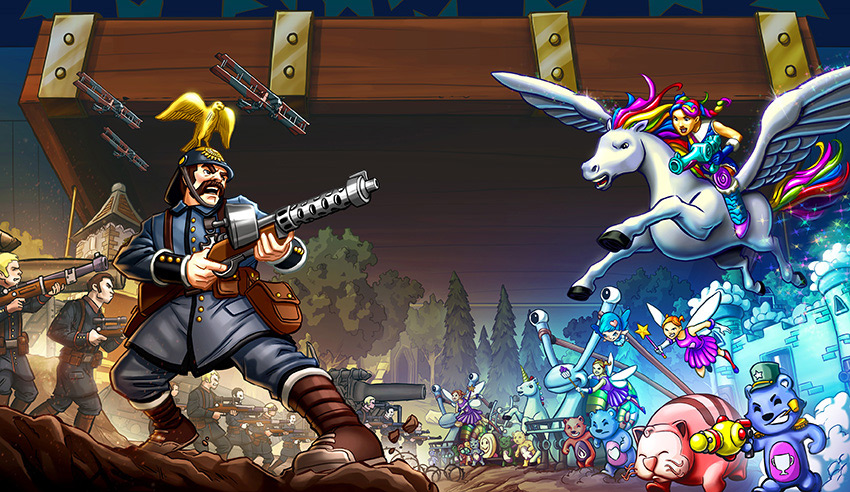 The four armies available at launch (expect lots of DLC), include the Kaiser's German forces and the Star Power army featuring unicorns and pixies. The other two will be revealed closer to the launch date. However each one will be upgradeable and customisable over time, letting you tweak which units you'll bring to the field and what equipment they go into battle with.