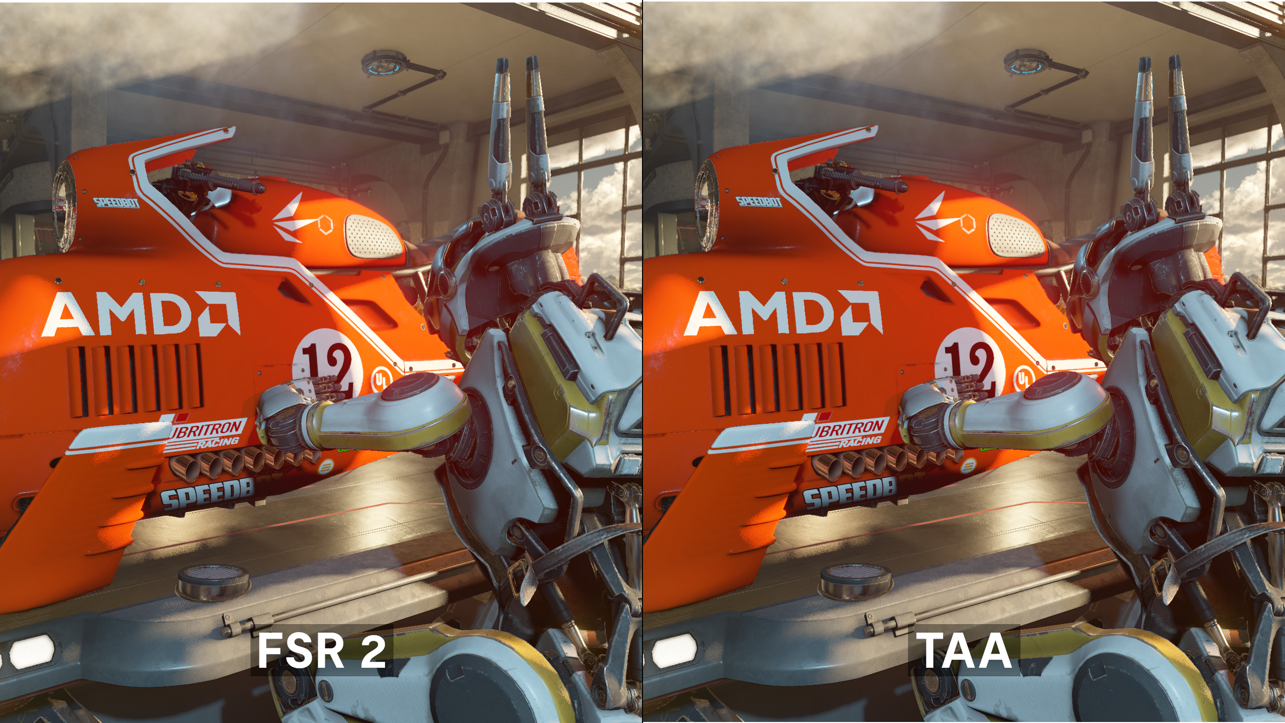 The AMD FSR feature test helps you compare the performance and image quality of AMD FSR 2.2 technology with a traditional rendering approach using Temporal Anti-Aliasing (TAA). The feature test also includes the 3DMark frame inspector tool, letting you compare image quality with an interactive side-by-side comparison of FSR versus native resolution.