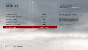 The settings menus contain most of the graphics options you would expect to find in a decent PC game, though motion blur is missing. It would also be nice to have separate options for MSAA and FXAA, rather than trying the two forms of anti-aliasing together.