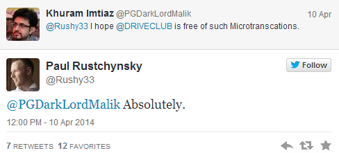 Last month we were led to believe that DriveClub would be free of microtransactions as the Director tweeted out against the form of payment and told a fan that the game would in-fact be free of them: