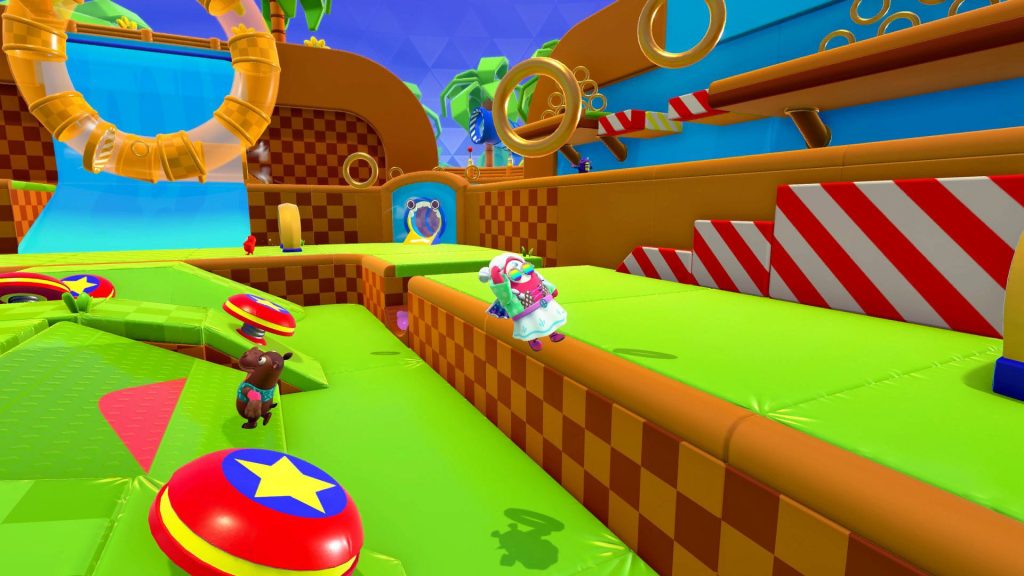 The level itself also looks to take some inspiration from Sonic when it comes to the obstacles. There are floating rings throughout the level, bouncy spring pads and a multi-tiered level setup – all common elements of a classic Sonic level.