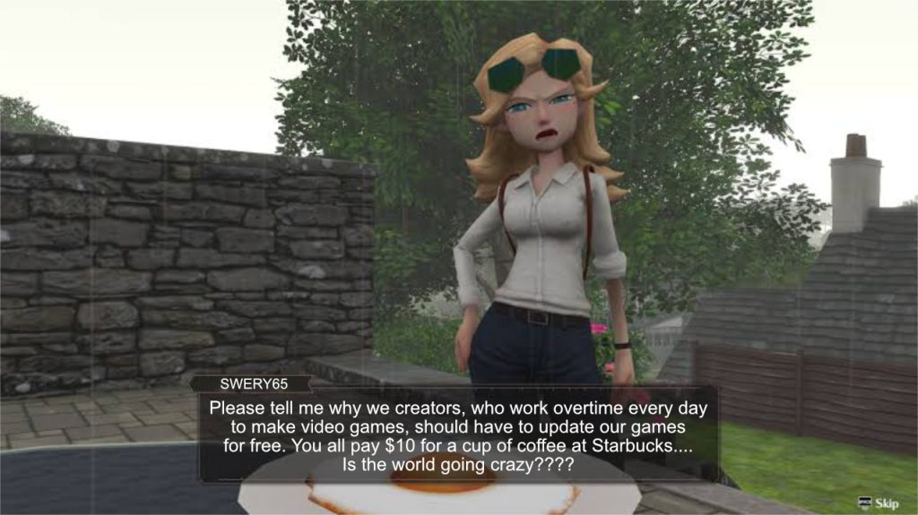 In a post on Twitter, Swery65 spoke on the decision to make The Good Life’s DLC a paid experience, saying “Please tell me why we creators, who work overtime every day to make video games, should have to update our games for free. You all pay $10 for a cup of coffee at Starbucks….Is the world going crazy????”