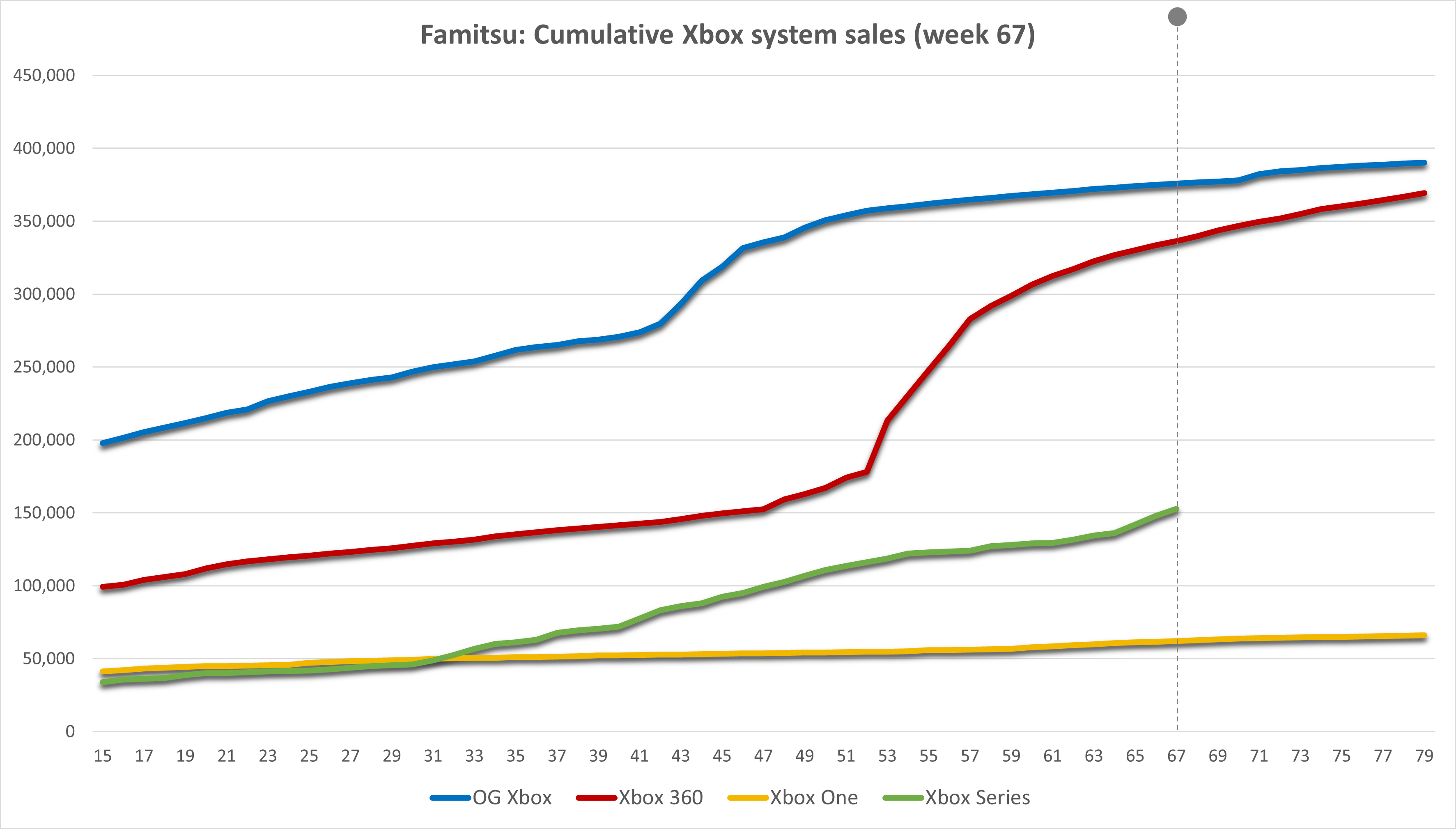 The original Xbox is next in line for overtaking, with the system having sold just shy of half a million units in Japan (lifetime). With the current trajectory that the Xbox Series X|S is experiencing, it is safe to assume that the OG Xbox will be overtaken in due time.