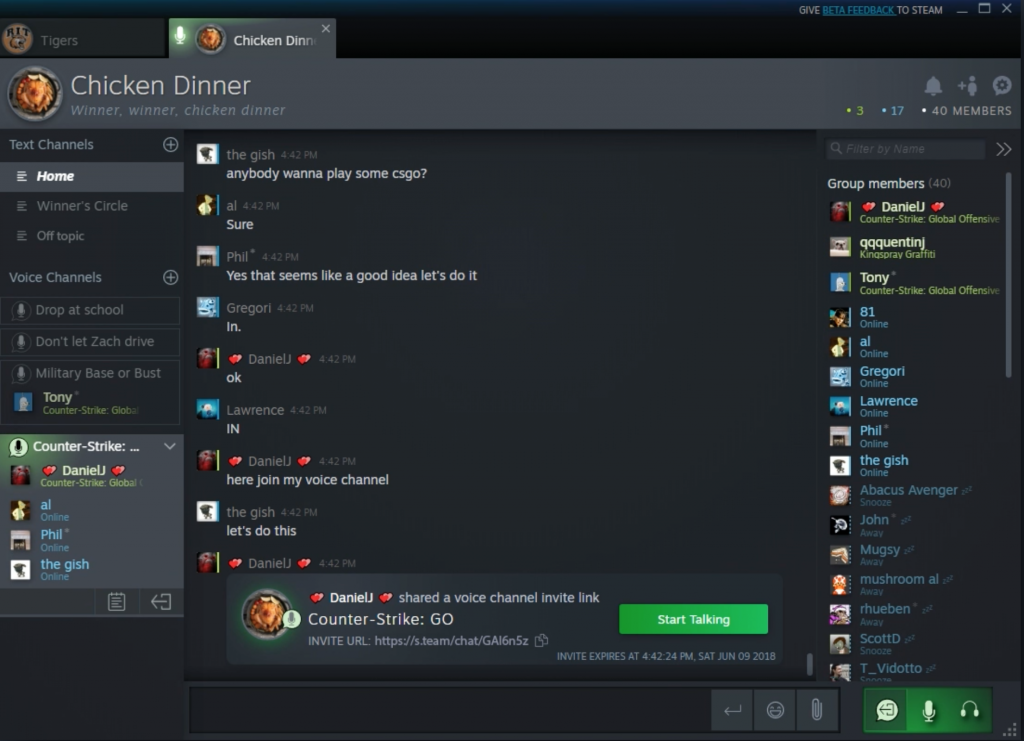Group chats, probably one of the biggest features available on Discord, has been revamped on Steam Chat. It is now easy to really create a community using the service, you can send game invites from within groups, and create separate channels within those groups too.