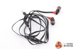 Positioned just below the left earbud we also find a small in-line controller. This allows for volume adjustment, as well as play/pause functionality and the ability to answer phone calls. This small controller also houses the S0's microphone.