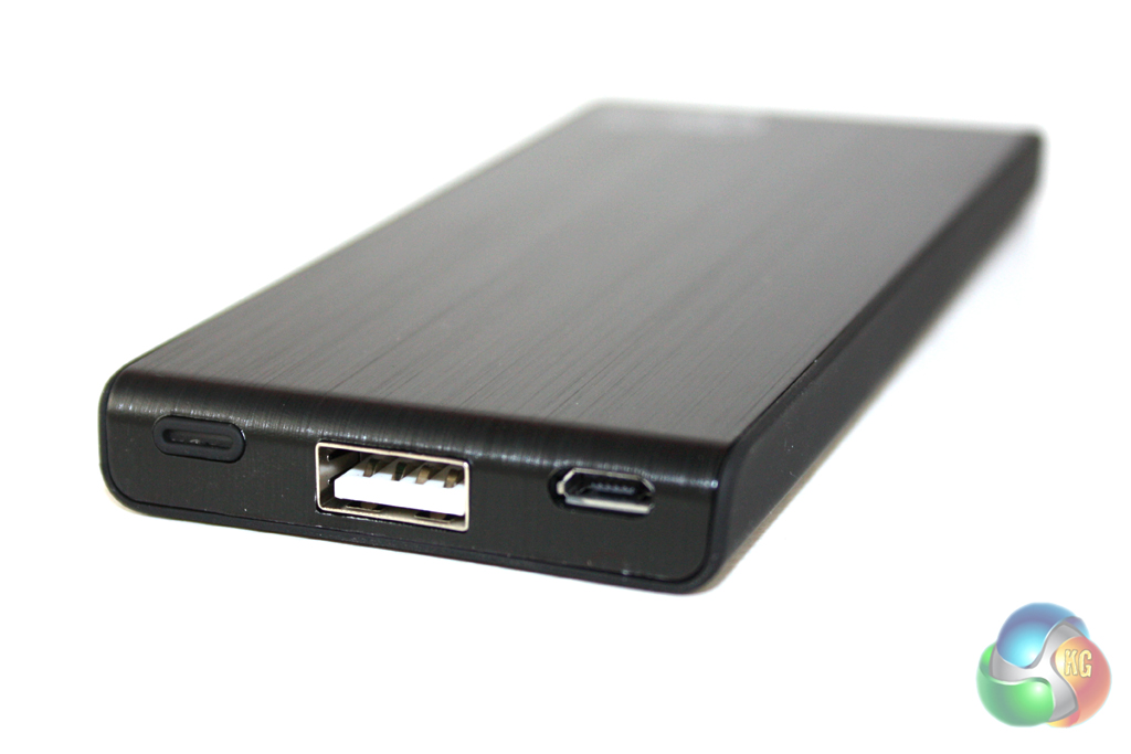 Both of the connections are located on one end of the device. We find a standard size female USB socket here which will let you plug in all manner of mobile devices, providing you have the appropriate cables. There is also a female micro-USB connector here which lets you charge the device using the provided cable.
