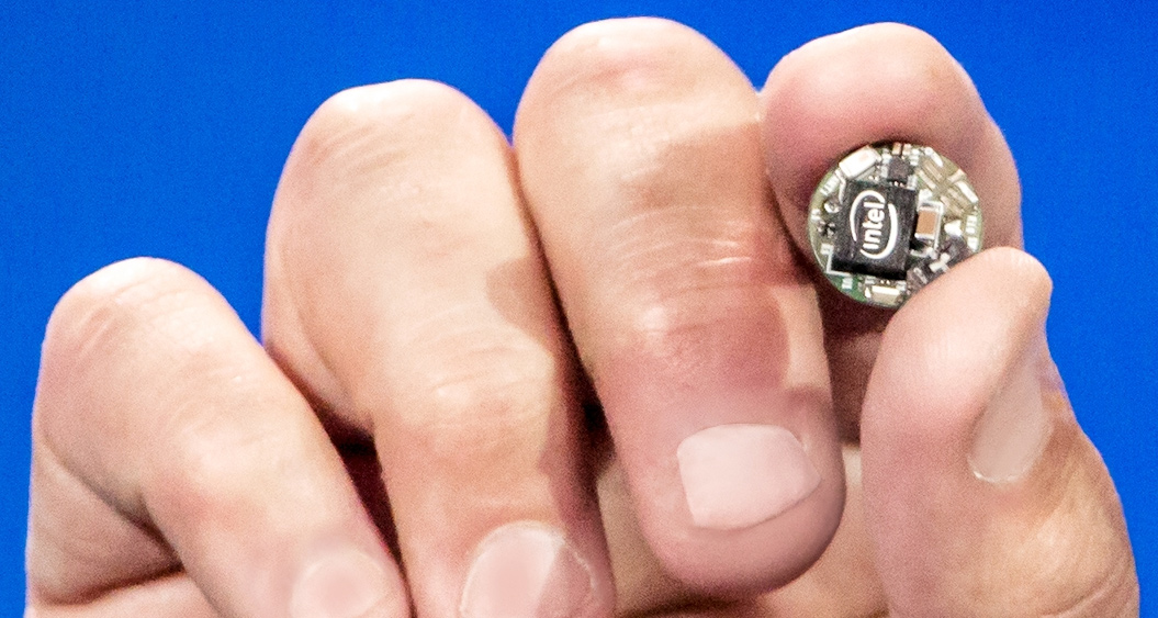 It is highly likely that the TAG Heuer smartwatch will be powered by Intel Quark system-on-chip or Intel Curie module. The Quark integrates one Pentium [P54C] core, an LPDDR2 memory controller and a host of I/O capabilities. The Curie module (pictured below) unveiled early this year features one Quark SoC, low-power integrated DSP sensor hub with a proprietary pattern matching accelerator, Bluetooth Low Energy, 6-axis combo sensor with accelerometer and gyroscope as well as battery charging circuitry (PMIC). The watch will use Google’s Android Wear operating system and will therefore be compatible with a lot of modern smartphones.