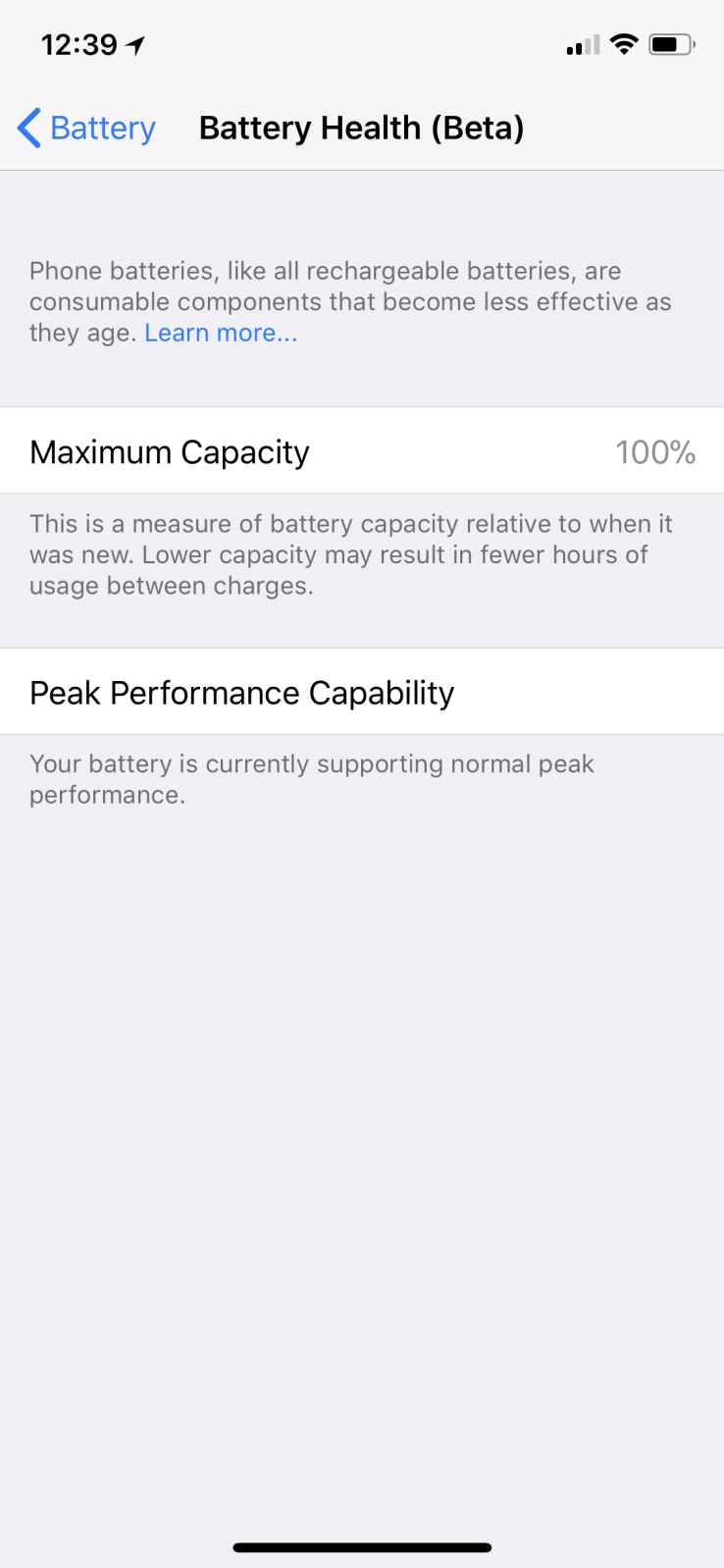 Most of these are simple quality of life improvements that are built for accessibility and general stability without being too ground-breaking, but the battery health monitoring portion is rather sizeable. Currently, it only houses two headings: Maximum Capacity and Peak Performance Capability which is measured on a percentage scale with 100 percent, obviously, being the top.