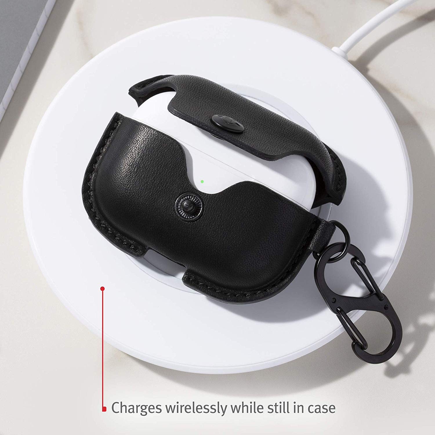 The AirSnap Pro features a stylish premium leather case that will protect the shiny white AirPod Pro charging case from everyday scratches or scuffs. Not only does the AirSnap Pro offer protection, it allows users to wirelessly charge the earbuds and case using a Qi-certified charger or with the Apple Lightning cable just like they would normally.