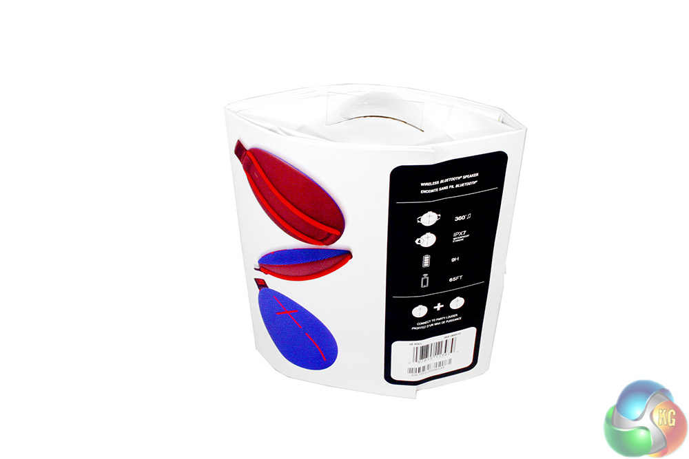 The Ultimate Ears Roll comes in a unique piece of packaging. It is made of relatively thin card, folded around it in quite a feat of origami. It features a large image of the Roll on the front, in whichever colour you chose. There are a number of alternatives available, including our Blue/Red version, a plum colour and a few with various patterns too.