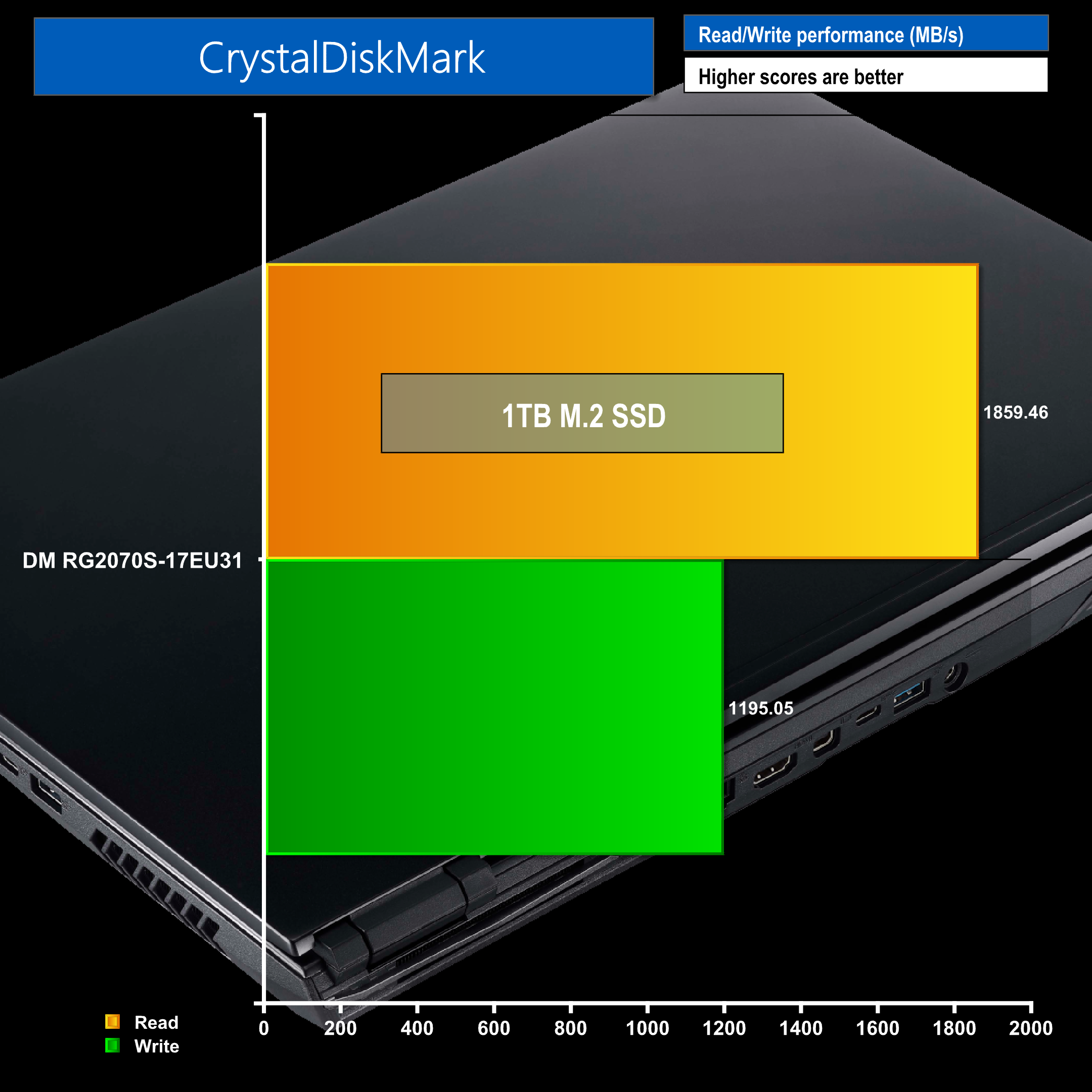 PCMark 10 results show us its capabilities across a range of tests. Our memory benchmark comes in with great results for our 16GB of RAM. CrystalDiskMark results for our 1TB SSD aren’t bad but I was expecting to see better results, in actual use I didn’t really notice any setbacks though.