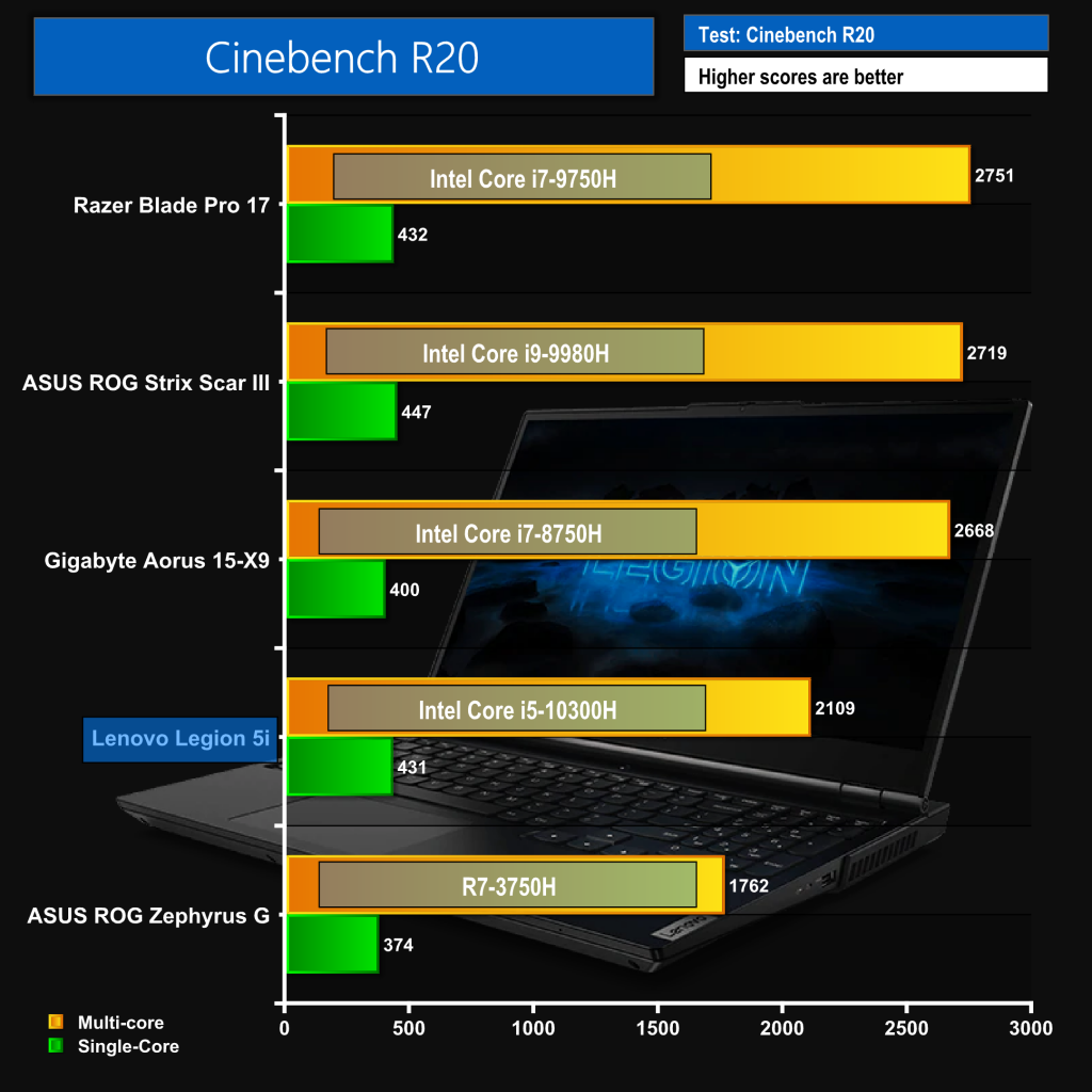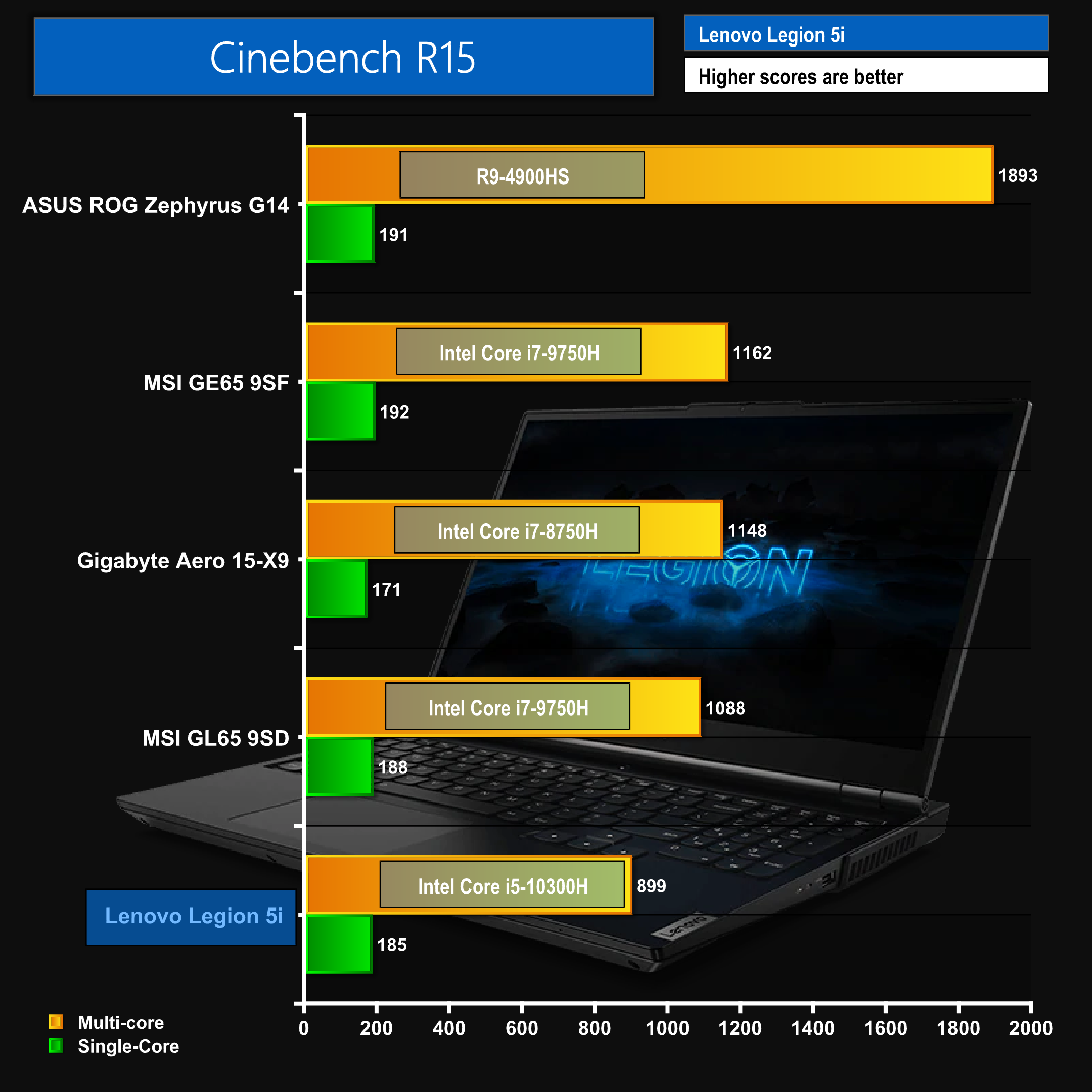 On the charts it appears the Legion performs badly against the other models, however; you must keep in mind we are testing a 10th Gen i5 against i7 and even Ryzen 9 CPUs.