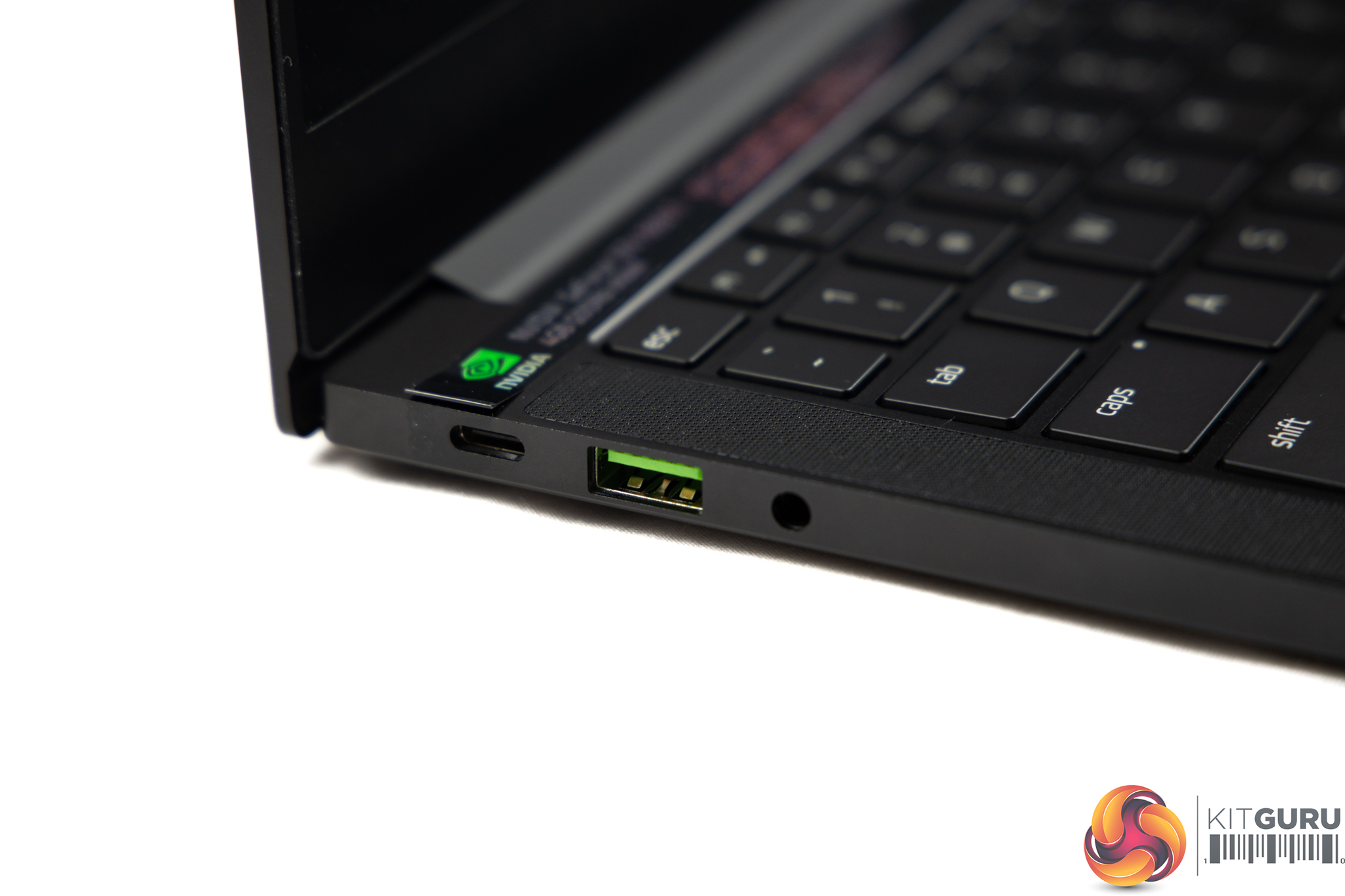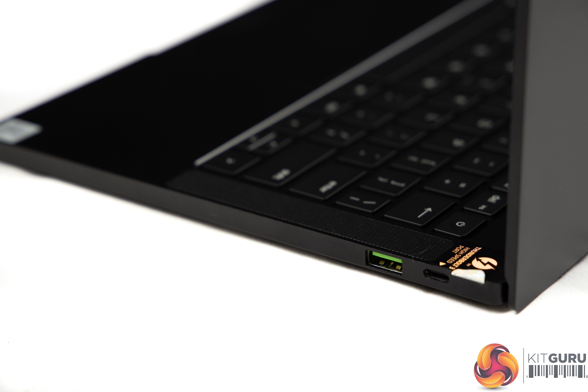 Despite how small this little package, is our model comes in at a rather hefty £1899.99, and for that you’re getting a Quad-Core 10th Gen Intel i7-1065G7 CPU with Hyper Threading with a base of 1.3GHz up to 3.9GHz with Turbo at 25W. We finally get that dedicated graphics card, an NVIDIA GeForce GTX 1650 Ti with 4GB GDDR6 VRAM, and this is Max-Q so it can be squeezed into such a tiny package. We have only one drive here, a 512GB PCIe NVMe M.2, which is twice the size of the SSD in the previous Stealth 13.
