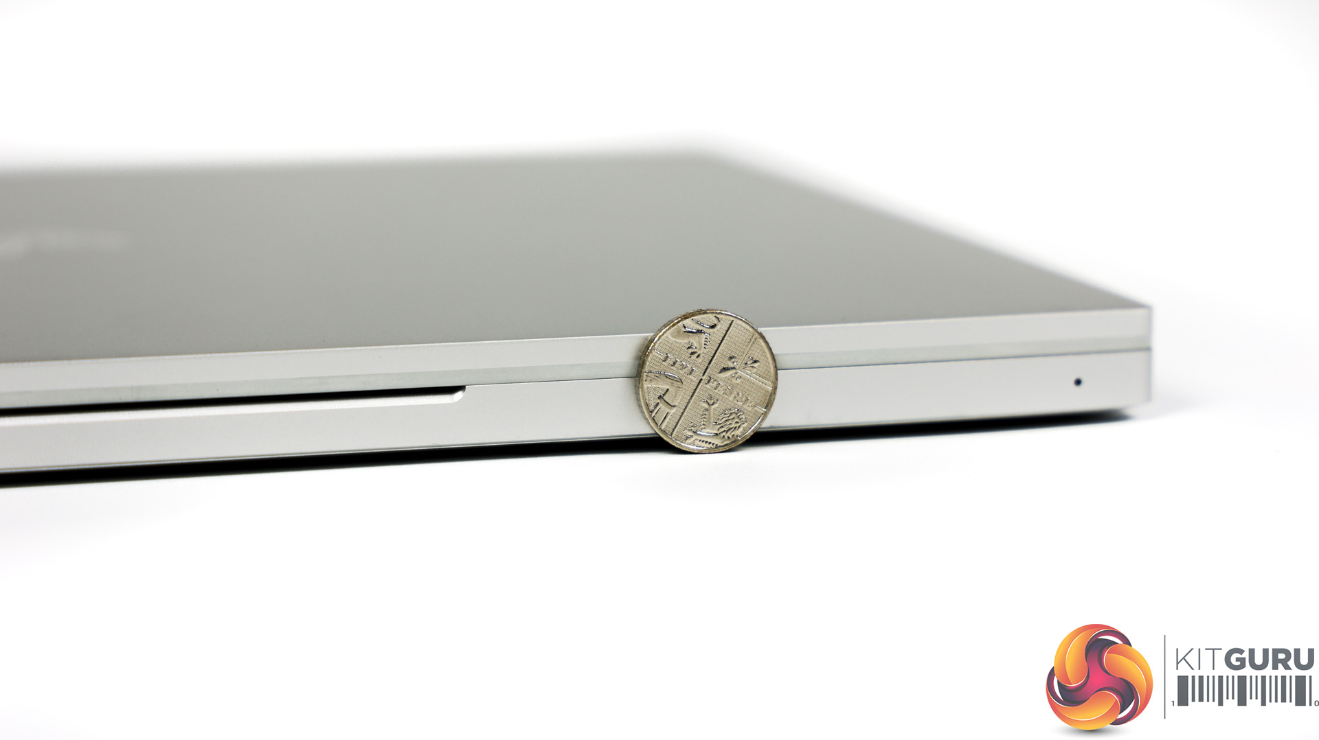 It’s fairly heavy despite its small size at 1.4KG but it is an anodised aluminium uni-body design, reminiscent of the older Apple MacBook Pro, personally we like that is has some weight behind it and we also like the metal construction because it does give it an air of quality. If it was super lightweight and plastic, I think it would feel like a toy and I’d be dubious of its longevity or build quality. Talking of build quality, it’s great. There’s no rattle from any of the keys on the keyboard and the screen lid opens smoothly with enough resistance to hold the screen up at an angle.