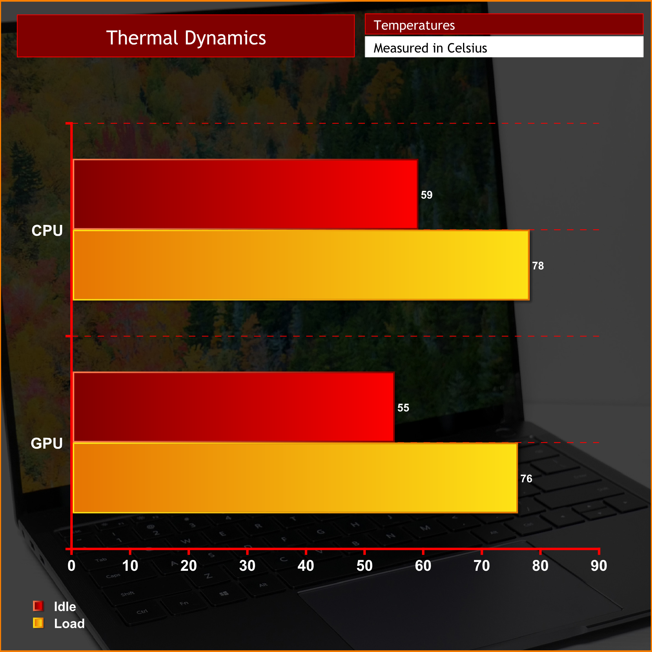 I did notice the laptop's chassis getting quite warm to the touch, however, so when it was stressed it became a bit uncomfortable to sit right on my lap. Definitely best placing the machine on a desk if you can.