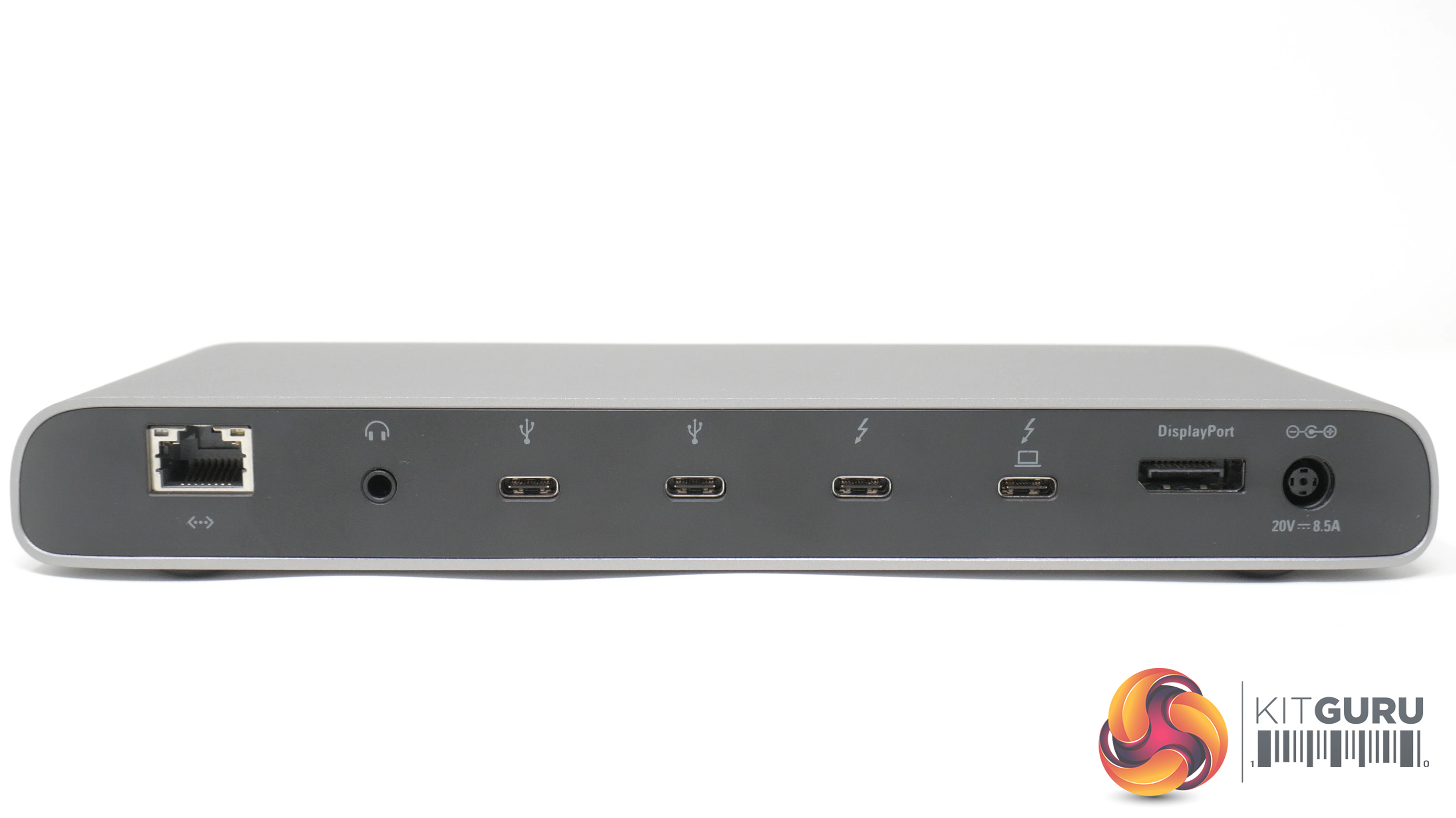 - Ports (rear): 2x USB 3.1 Type-C Gen 2, 2x Thunderbolt 3, DisplayPort, Power, Headphone output, Gigabit Ethernet