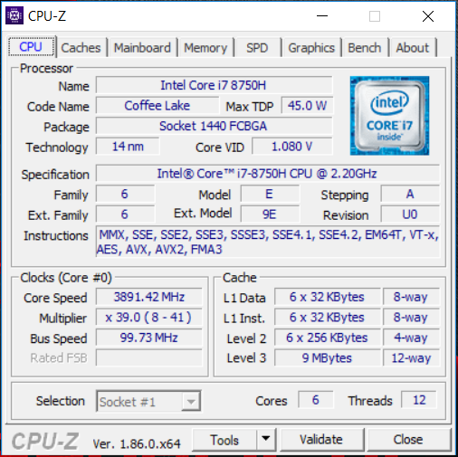 This laptop uses the hexa-core i7-8750H processor which has a base clock of 2.2GHz but will turbo boost up to 4.1GHz under load on a single core. We noticed that in the ASUS ROG Strix Hero II it will boost up to 3.9GHz across all cores.