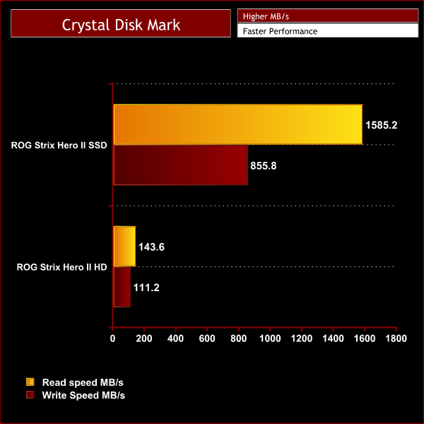 The CrystalDiskMark results show that the 256GB M.2 drive has a decent read and write speed. It's not the fastest we have seen but it easily outperforms the SSD in the similar MSI GE63 Raider laptop. The speeds coming from the 1TB hard drive are a little disappointing but it is only a 2.5in HDD after all and still provides a solid 1TB of storage for your media/games collection.