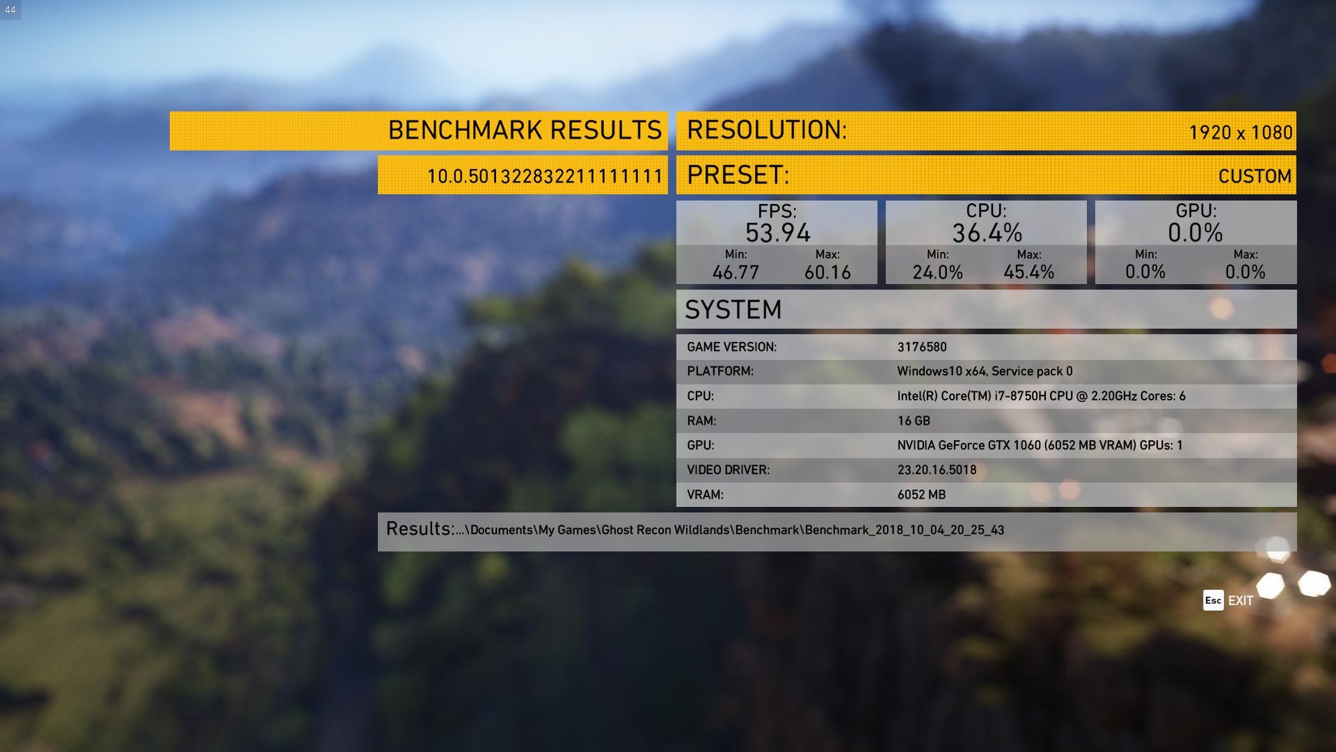 Tom Clancy’s Ghost Recon Wildlands is a game with a superb open world environment. The beautiful scenery of mountains, forests and deserts requires a lot of GPU power to render, particularly on high settings. This demanding game is perfect for testing this PC’s gaming performance.
