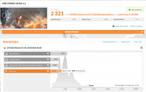 For this test, we ran the Fusion II through Fire Strike, Fire Strike Ultra and Time Spy. In the graphs below you can see it compared against similar laptops. Even though they all have similar specifications, slight variations in boost clock speeds caused by fluctuations in temperature have an impact on performance.