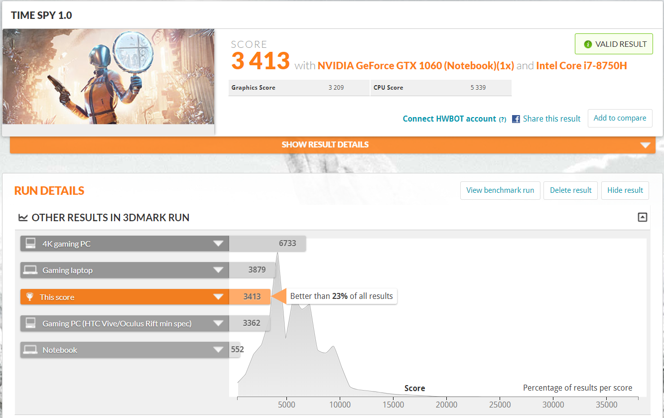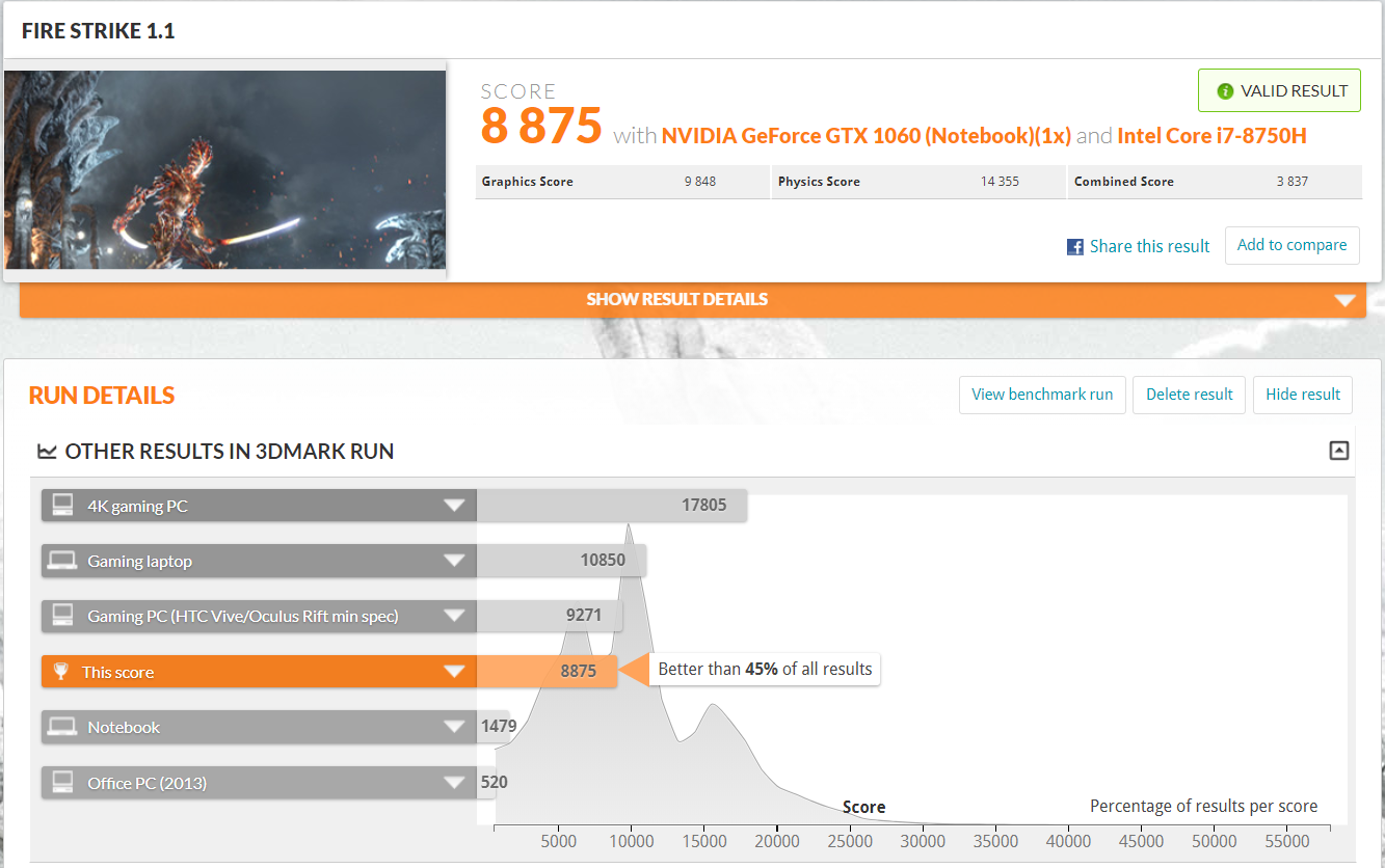 However, when it comes to the Physics and CPU scores the Fusion II sits comfortably somewhere in the middle as all 7 of the comparison laptops use the same i7-8750H.