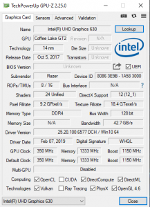 Home / Razer Blade Pro 17 Review (2019) / GPUZ Intel UHD 630