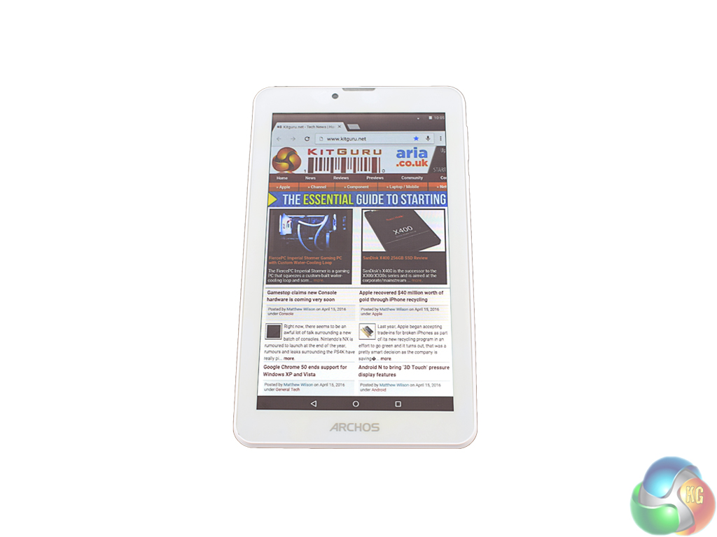 The 7 inch display on the Archos 70b Helium has a 1024×600 resolution. Admittedly this is not huge, resulting in a pixel density of 169.55 PPI. While I do like my tablet screens with ‘retina' sharpness – ideally above 300 PPI – that is not feasible for a budget tablet. My thinking is that if you are considering a £70 tablet, you are probably not too fussed about how sharp the display is. After all, it is still entirely usable, it just lacks that extra crispness you get with a higher resolution.